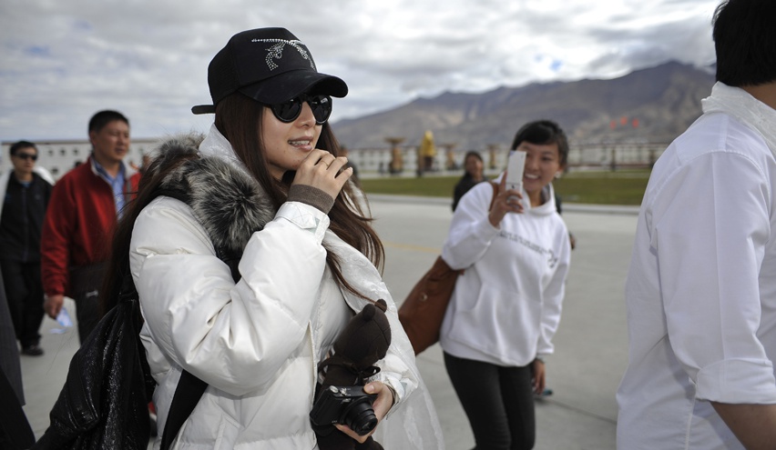 6月3日上午,许多网友在拉萨机场遇到李晨范冰冰,俩人似准备离开拉萨。俩人着装简便轻巧,分头行动。