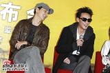 《天堂口》发布会 刘烨和台湾小生杨佑宁 《天堂口》发布会 舒淇手拿话筒侃侃而谈 《天堂口》发布会 刘烨手拿话筒发言 《天堂口》发布会 台湾小生杨佑宁