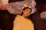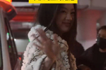 唐嫣玫粉色贴身毛衣套装