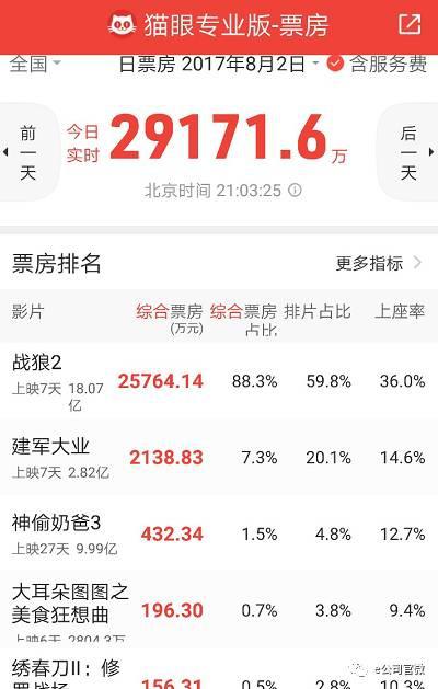 而《战狼2》的票房7天也已经突破18亿元,与国内票房第一的《美人鱼》当时上映前7天票房18亿元相当。