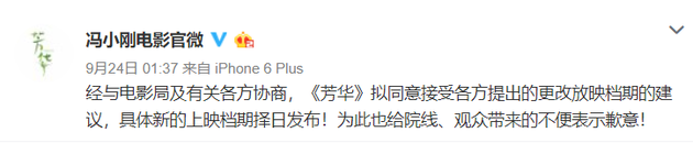 2017年9月24日,《芳华》上海首映礼宣布撤档