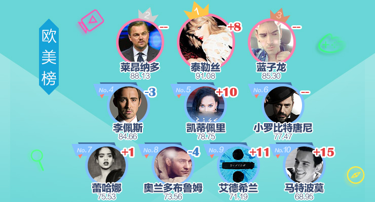 - 张艺兴王源重回内地榜前十 霉霉登顶欧美榜