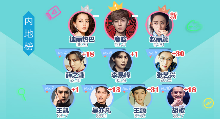 内地榜:张艺兴王源重回前十