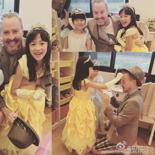 新浪娱乐讯 随着新一期《爸爸去哪儿》的录制,一些“老朋友”也重回大众视线。9月22日,夏克立在微博上晒出女儿夏天的公主照。照片中,夏天和小伙伴一起扮成“贝尔”小公主,依偎在爸爸怀中的她笑容甜美依旧。夏克立还高兴地说:“你想不想跟我们一起打扮?”