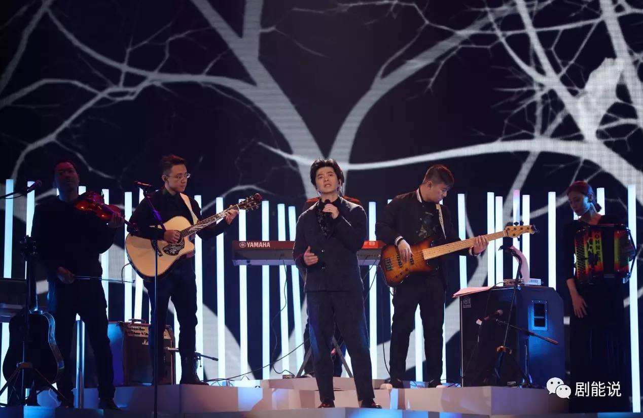 国剧盛典现场,也有很多影视金曲现场,比如李荣浩唱的《等你爱我》、《微微一笑很倾城》。还有张碧晨唱的《年轮》、华晨宇[微博]唱的《微光》等等。但最让我感动的是,是李健[微博]唱《月亮代表我的心》的时候,屏幕上显示的《老房有喜》片段……
