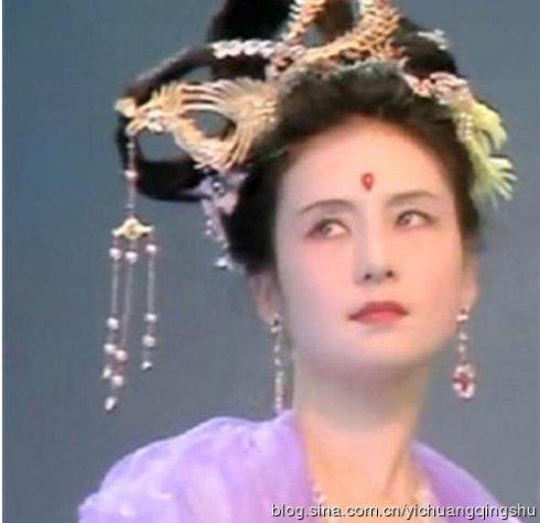 李颖是黑龙江人,早年赴香港TVB发展,因与香港明星张敏颇有几分相似,被冠以“小张敏”的绰号,上图是她在张卫健主演的《齐天大圣》中扮演的嫦娥,不知是不是服装和妆容的缘故,完全看不到一丝仙气。