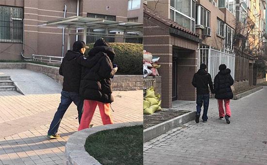 像是她和谢霆锋牵手遛弯↓
