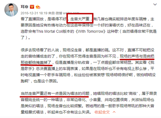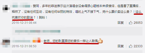 但也有去现场看过的观众表示,现场听起来很好,现场和直播的效果是有很大差距的。