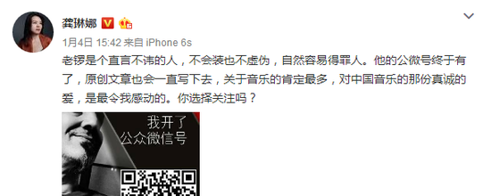 明明大家是在讨论王菲的演唱会,老锣站在音乐人的角度提出批评也可以理解,但龚琳娜她突然宣传起了老锣的公众号!