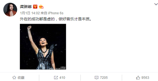 但1月1号当天,龚琳娜又发了一条微博说,外在的成功都是虚的,做好音乐才是本质。