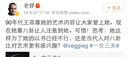 除了这一次的公开批评王菲,老锣在2014年也对王菲的私生活发表过评价。