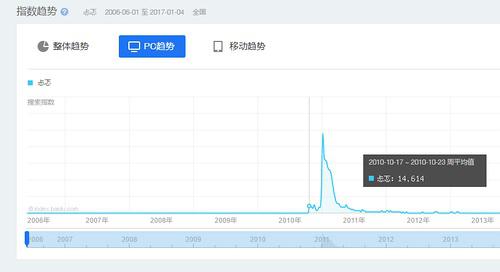《忐忑》是在2006年就出了,但通过百度指数可以看到,是从2010年10月17日这一天开始红起来的。