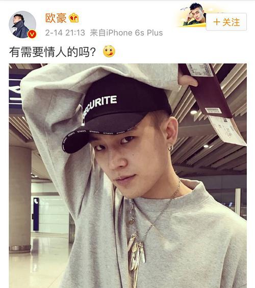 欧豪在当天发了一张自拍,手上拿着一张机票。