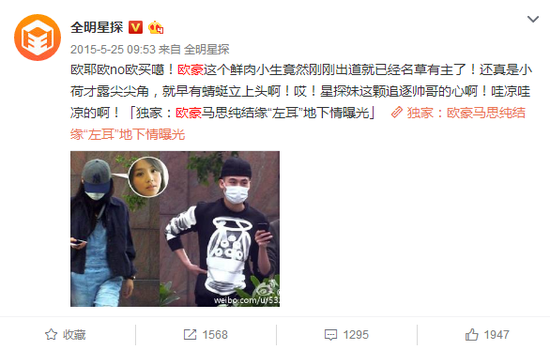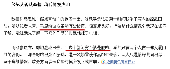 但当时这个消息遭到了欧豪工作人员的否认,表示他们两个只是在谈工作。