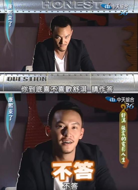 2005年舒淇张震上《康熙来了》,张震被问到“喜不喜欢舒淇”,张震第一次拒而不答。