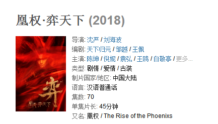 前有周迅在《如懿传》中挑大梁,后有陈坤接拍《凰权》。不过他们俩本身也是拍电视剧出道的。