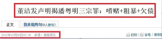 2012年的风波直到两年之后才有结果,潘粤明起诉董洁经纪人胜诉。
