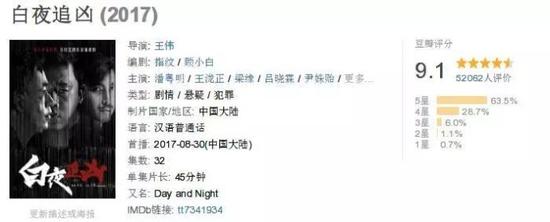 除了卫视电视剧的播出,今年网剧的质量也是可以与卫视剧相媲美的,最新网剧《白夜追凶》的评分更是远超《那年花开》,成为今年电视剧的黑马。