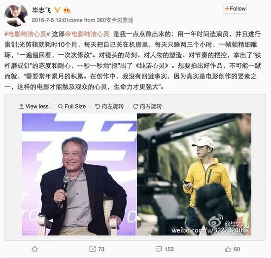 但拍电影的最纯洁之心,难道不是回到电影本身?难道一颗纯洁之心,不该对电影遭遇的恶评,保持平静之心?