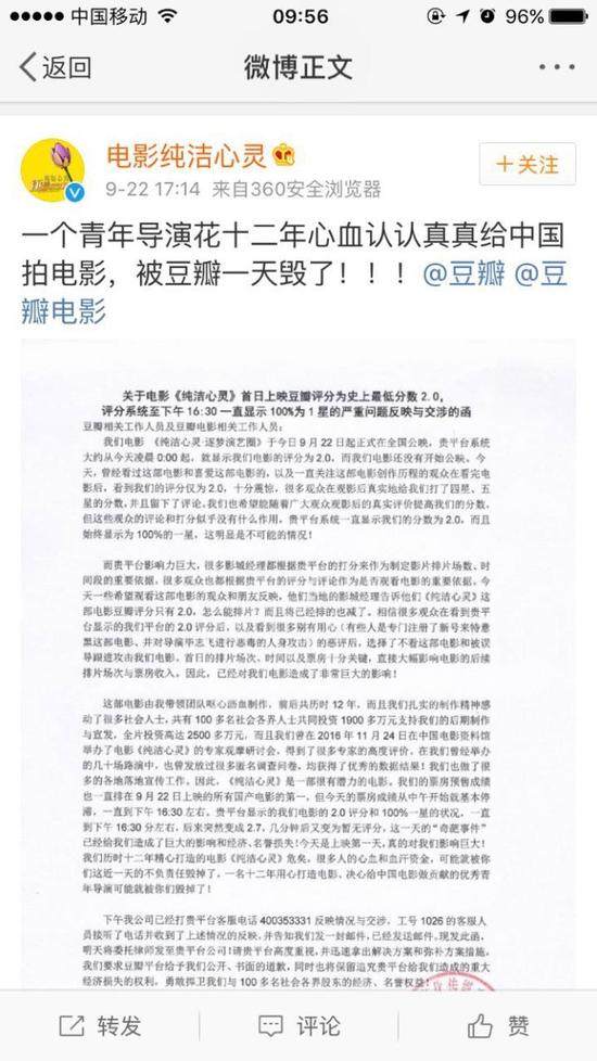 当然还有近年来低评分电影的规定动作——片方手撕豆瓣!