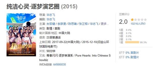 比如,这部《纯洁心灵•逐梦演艺圈》,轻易就将排片少、评分低的锅全甩给了豆瓣。