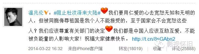 他在微博上经常发一些主旋律内容,比如痛骂杜汶泽,没想到哇,虽然生在香港,温兆伦也有一颗红亮的爱国心。