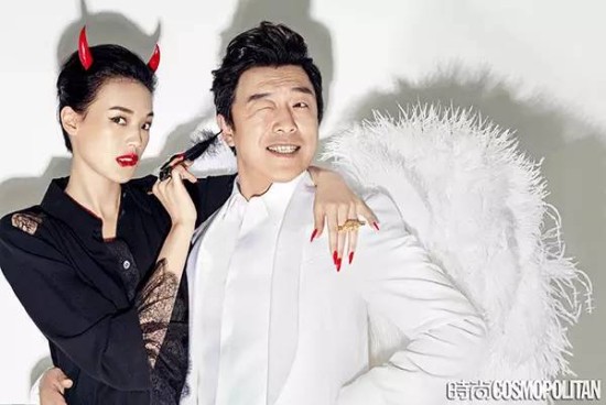 她和黄渤拍过一组主题是“天使与魔鬼”的大片,简直性感又俏皮,就算我是一个直女,也觉得她性感得无可救药。