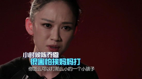 陈乔恩曾经在《非常静距离》里自曝,妈妈小时候常常呼她巴掌,还会用树枝捆成一团毒打到出血。