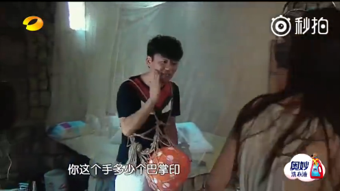 有一期是妈妈们躲在帘子后面爸爸们来摸手辨认老婆,王宝强一下子就摸出了马蓉的手,后来他还半开玩笑地说,“你的手我还认不出来,就我这脸上有多少个你的巴掌印”。