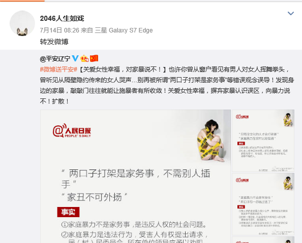 宋喆的微博已经很久没更新,最近的两条都是关于家暴的,结合马蓉的说法,似乎有点意味深长。