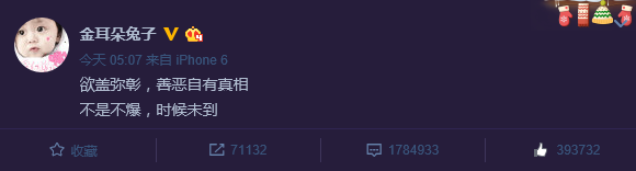 但其实这是个高仿号,ID根本不是“金耳朵兔子”而是“金耳朵兔孑”,最后一个字是“孑然一身”的“孑”……晃眼一看真的会看错。