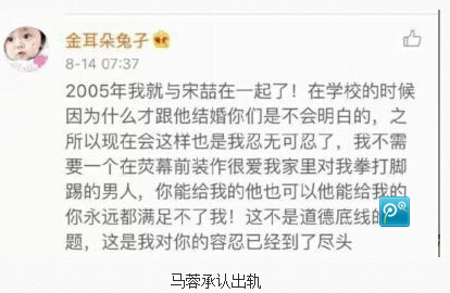 谣言二:马蓉承认出轨并表示早就和宋喆在一起了。