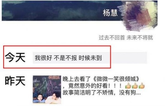 同时也有疑似杨慧的朋友圈曝出,用了和马蓉几乎一样的措辞:“不是不报,时候未到。”