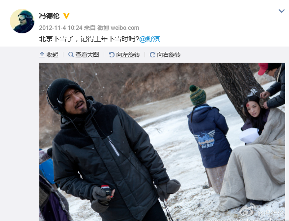 但他会在下雪的时候问她还记得去年一起拍戏的时候吗: