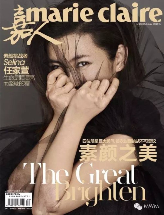 Selina曾经素颜为《嘉人》拍摄了一组封面,主题叫“生命是颗漂亮而坚硬的糖。”
