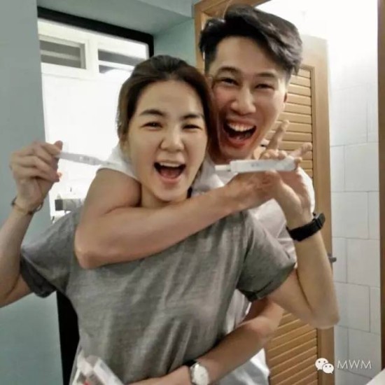 像她这样举着两只验孕棒公布自己怀孕的女明星真的……不常见。