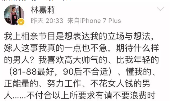 实际上,在节目结束之后,40岁美女嘉宾的微博发言,也未必让所有人感到愉快。可是在节目组努力打造出的这个爆点中,她在节目中的表现,堪称完美。