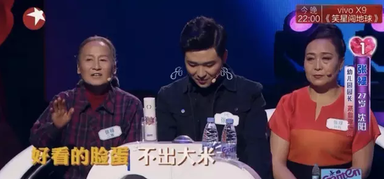 保姆式择偶——沈阳男,幼儿园园长,来现场的是他木讷的妈和多嘴的二姨,他二姨的口头禅是——好看的脸蛋才不出大米,她强调女方一定要会干活,在后面的节目也不停问女孩子会不会做家务,对女性充满了不尊重。