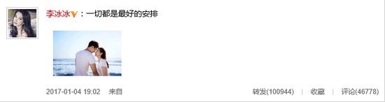 1月4日上午,有媒体曝光李冰冰与一男子亲密出游的视频。1月4日晚,李冰冰公开与男友恋情,晒出海边亲密照,表示“一切都是最好的安排”。