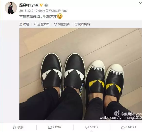 而就在天王公布恋情第二天,熊黛林就晒出了两对鞋子,其中寓意不言自明。