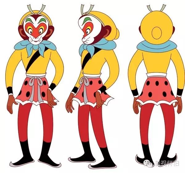 片中孙悟空造型经过多次修改,最终确定为现在的样子,他穿着鹅黄色上衣,腰束虎皮短裙,大红的裤子,足下一双黑靴,脖子上还围着一条翠绿的围巾,导演万籁鸣用八个字称赞他“神采奕奕,勇猛矫健”。