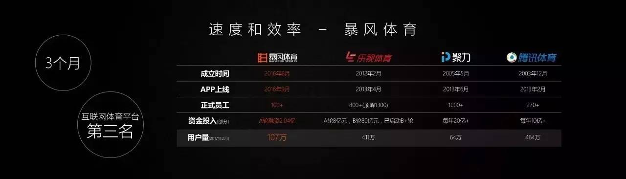 娱乐资本论注意到,头条化的暴风体育,成立不到百天,就宣布了融资2亿的消息,可谓创造了体育产业创业的新奇迹。随即,暴风体育发布了第二代产品,3个月后其在体育平台APP的排名就蹿升到第3名,仅次于腾讯体育和乐视体育。