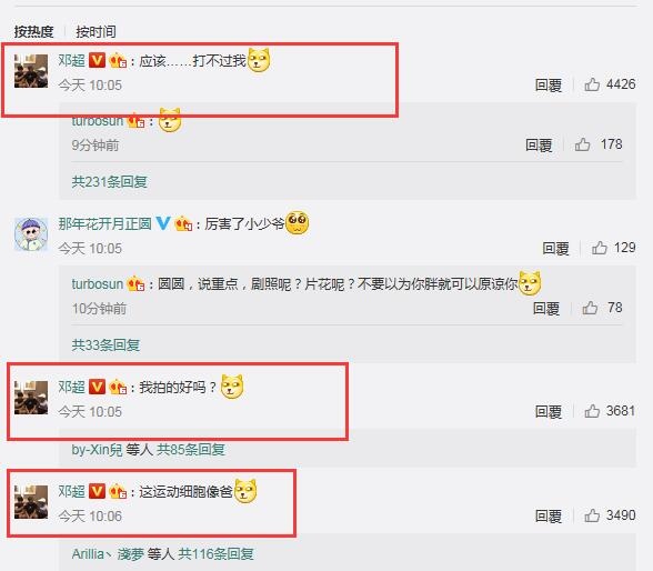 然而,邓超立刻评论道:“应该……打不过我。”孙俪则回复了他一个狗狗的表情。而随后,邓超又接连评论,“我拍的好吗?”“这运动细胞像爸。”陈赫也点赞道:“真棒!”