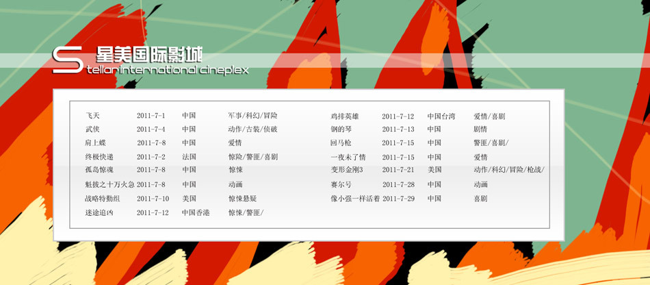 星美影城2011年7月影片上映安排