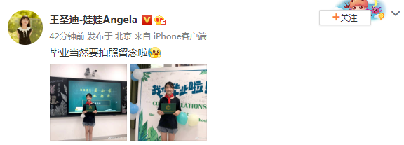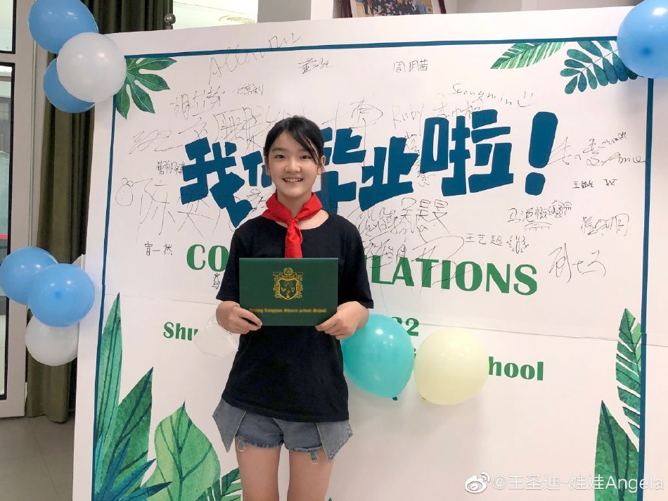 8日,王圣迪发微博透露自己小学毕业并晒出照片。她手拿证书对镜头开心微笑,王圣迪曾演过《隐秘的角落》、《左肩有你》、《刺杀小说家》、《摩天大楼》等。