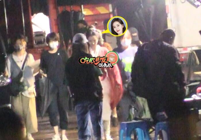 14日,《脱轨》新路透曝出,刘浩存身穿白色西装短裤,撑伞走入片场。