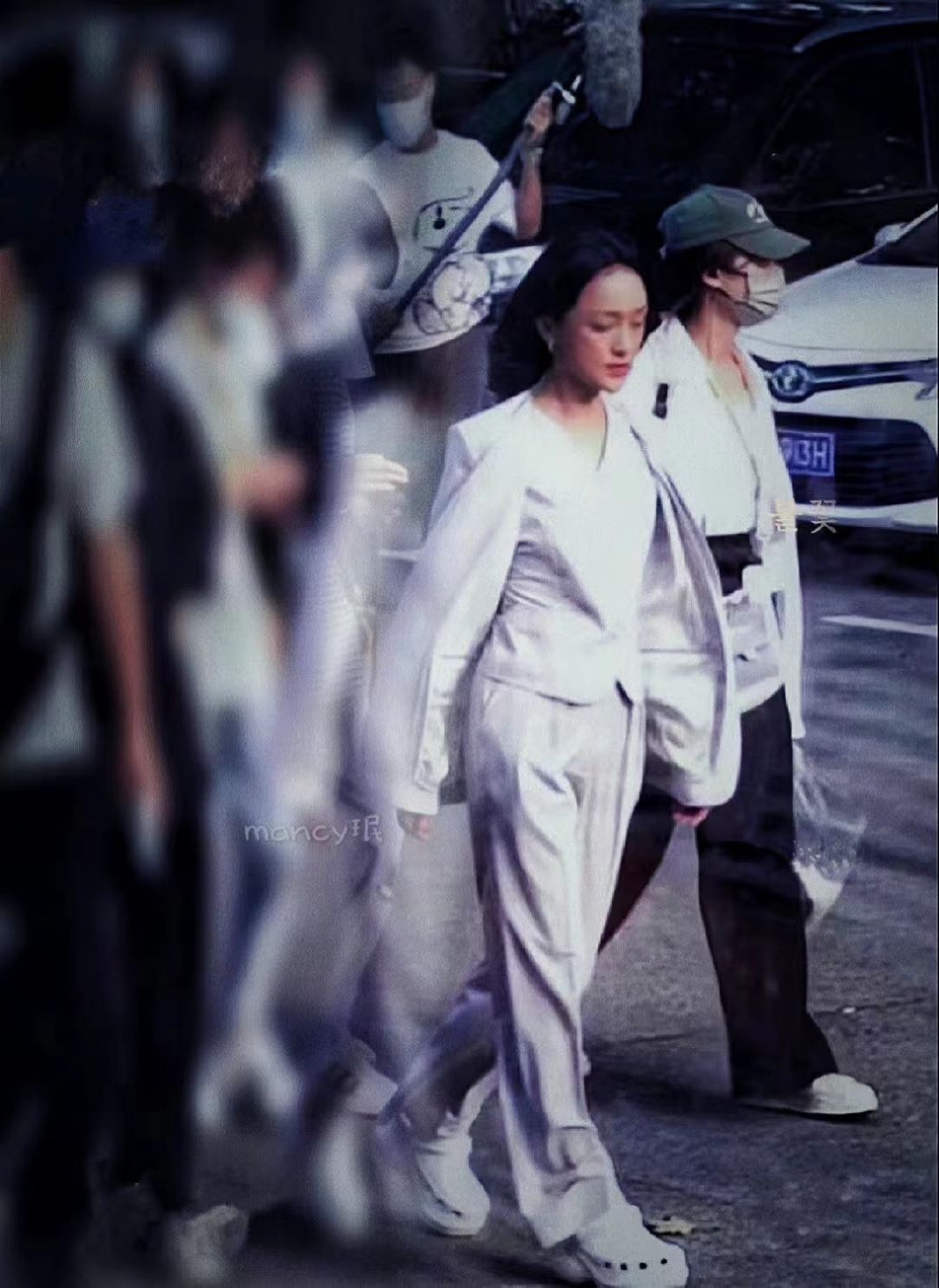 周迅《不完美受害人》新路透曝光,照片中,她着一身白色套装,一头利落短发随风轻扬,故事感满分。