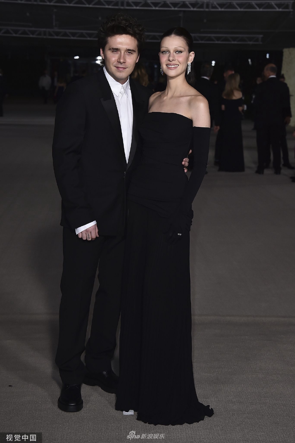 “傻脸娜”Selena Gomez和比伯妻子Hailey Bieber出席美国电影学院晚宴。赛琳娜黑西装优雅干练,海莉则是露腰长裙尽显性感。