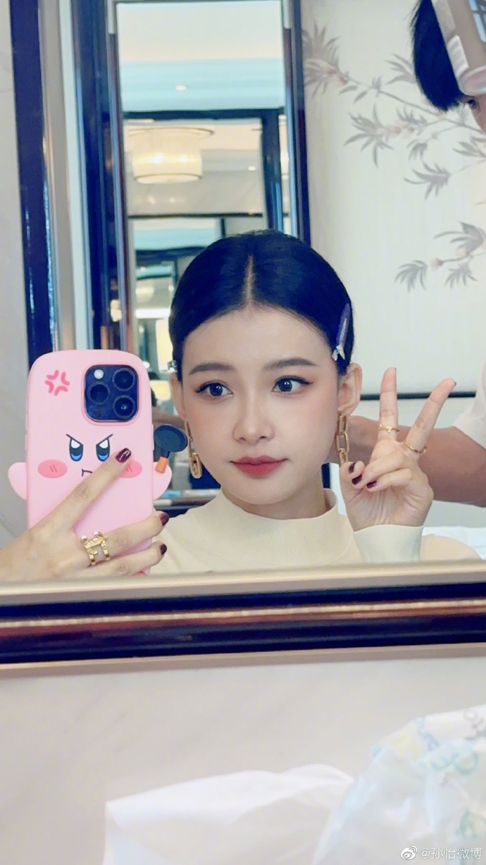 宋雨绮发博晒出音乐银行后台九宫格照片,黑白两套不同造型搭配橘色波浪长发,又美又辣。
