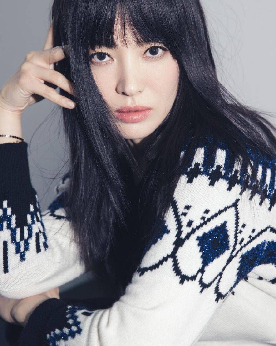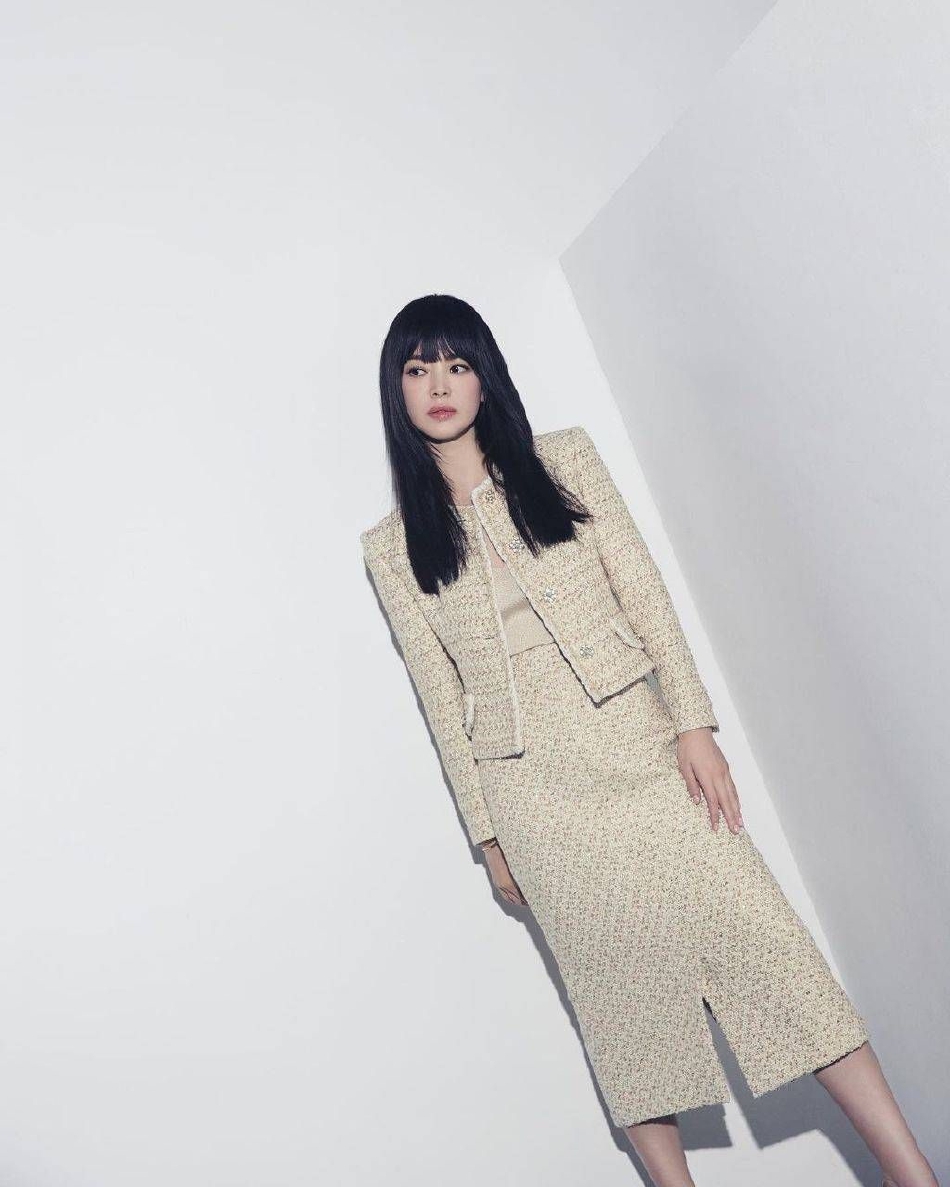 宋慧乔最新写真释出,齐刘海黑色长发散落肩头,搭配千鸟格纹大衣、小香风套装,干练十足。